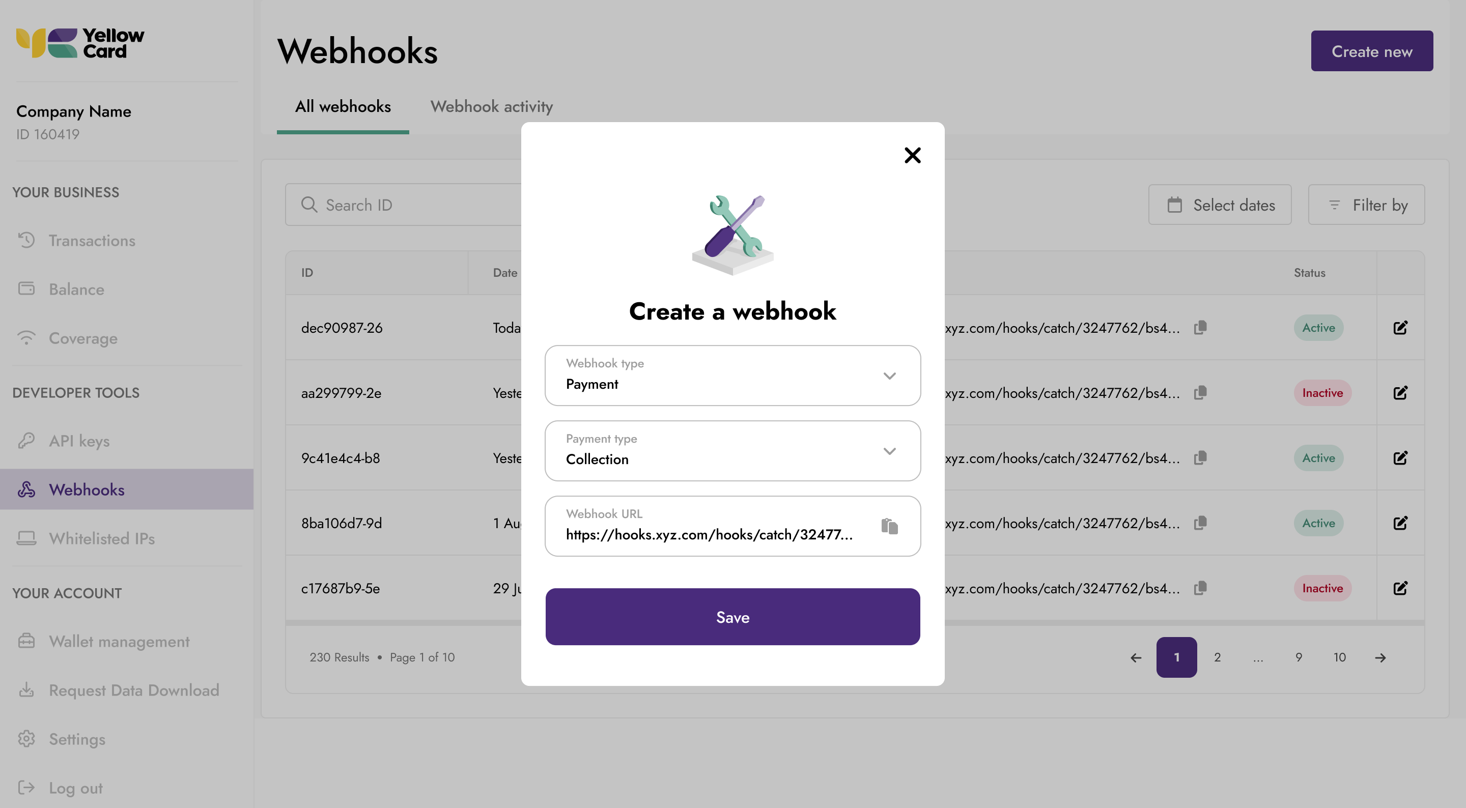 Webhooks allow Yellow Card to notify your application when events occur, eliminating the need for constant polling.